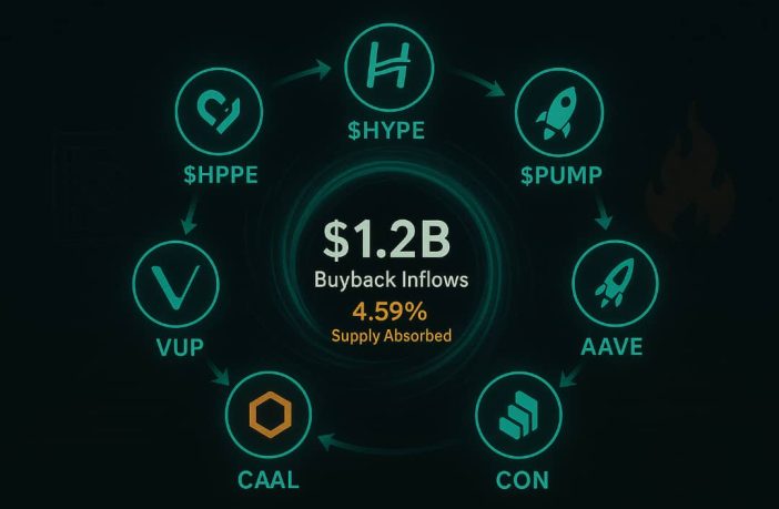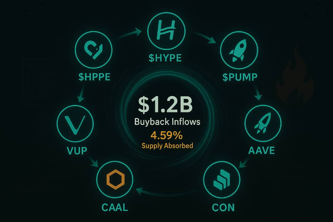 As of October 2025, aggregated buyback inflows stand at $1.2 billion, absorbing an average of 4.59% of total circulating supply across tracked protocols.