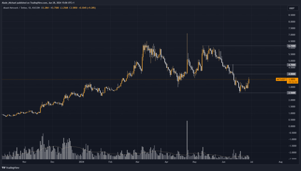 Amid recent market recovery, Akash’s AKT landscape has briefly changed to bullish following an impressive gain since yesterday. While the market sentiment remains bearish, we may see a continuation of the supply level increases.
