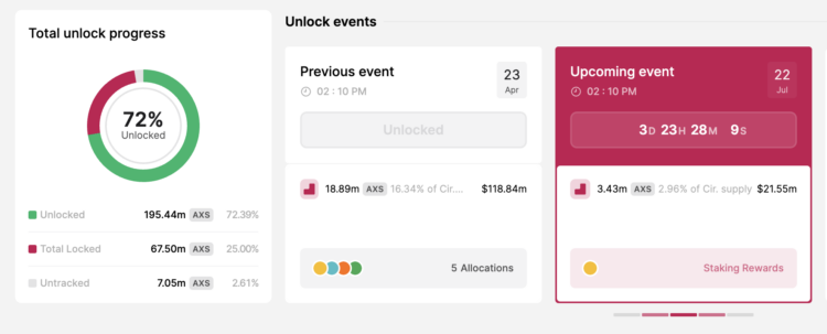 It is important to note that token unlocks can have varying effects on the market, depending on the circumstances and market sentiment. In this case, all of the unlocked tokens are designated for staking rewards for users of the Axie Infinity platform. This means that the tokens will not be immediately available for sale or circulation in the broader market. Instead, they will be used to incentivize and reward participants within the ecosystem.