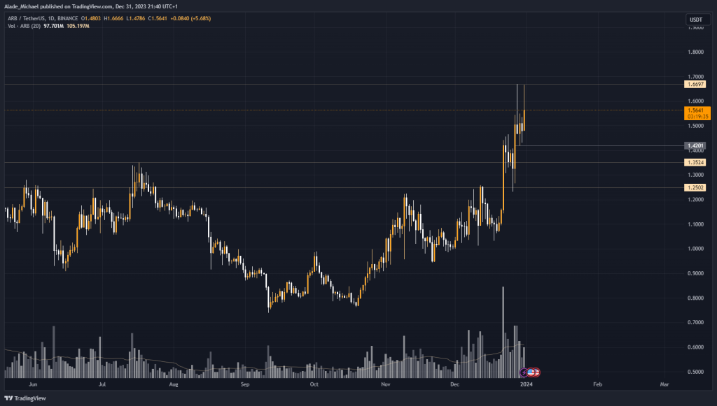 While some altcoins are still in the red today, ARB found support and bounced back strongly above the $1.50 level at the time of writing.