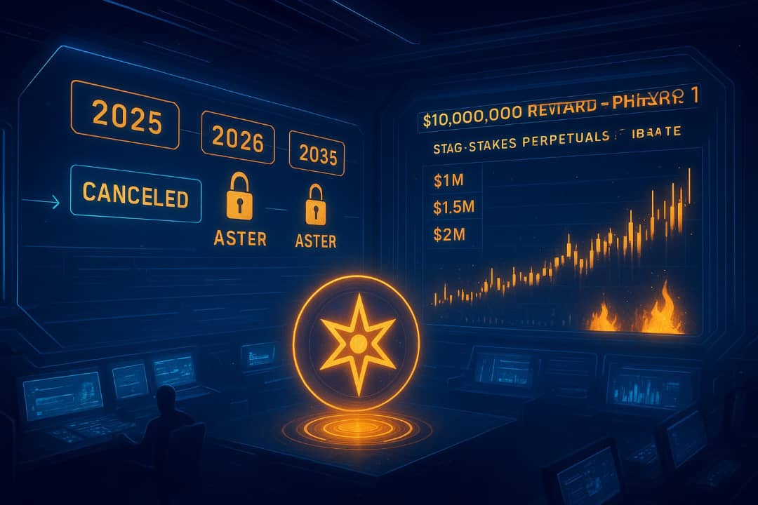 The derivatives exchange Aster is rewriting its tokenomics playbook. Several major unlocks initially scheduled for 2025 have been canceled, delayed, or pushed more than a decade forward, marking the most significant shift in the project’s emission roadmap since launch.