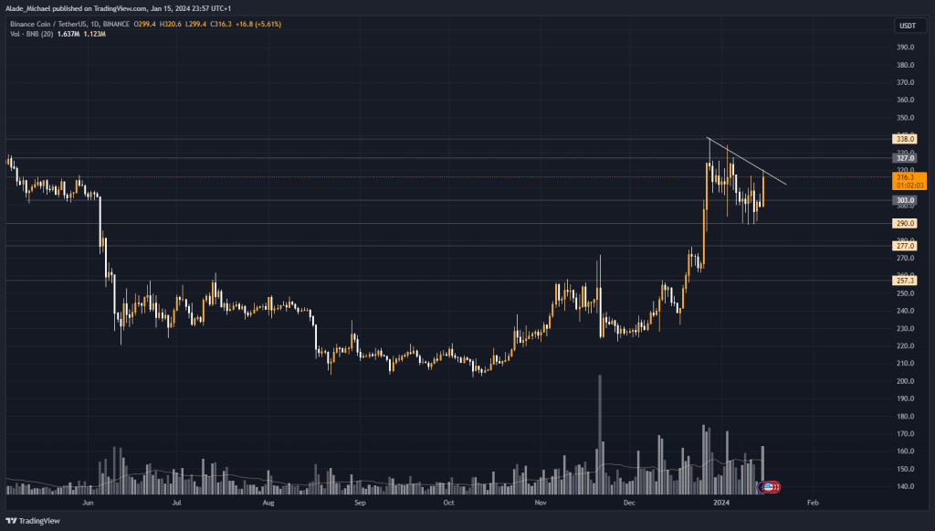 Since the price fell from a year peak of $338.5 in late December, BNB lost momentum and continued to look for support to resume buying.