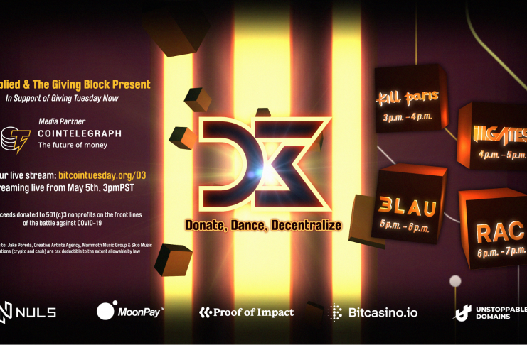The first licensed crypto casino, Bitcasino and crypto-led charity, The Giving Block both share a single vision of supporting the fight against COVID-19 and they have put the vision to work by raising funds through a virtual relief benefit concert — the D3 (Donate, Dance, Decentralize). The crypto-charity event was launched on May 5 and live streamed at 3PM PST – 7PM PST | 6PM EST – 10PM EST.