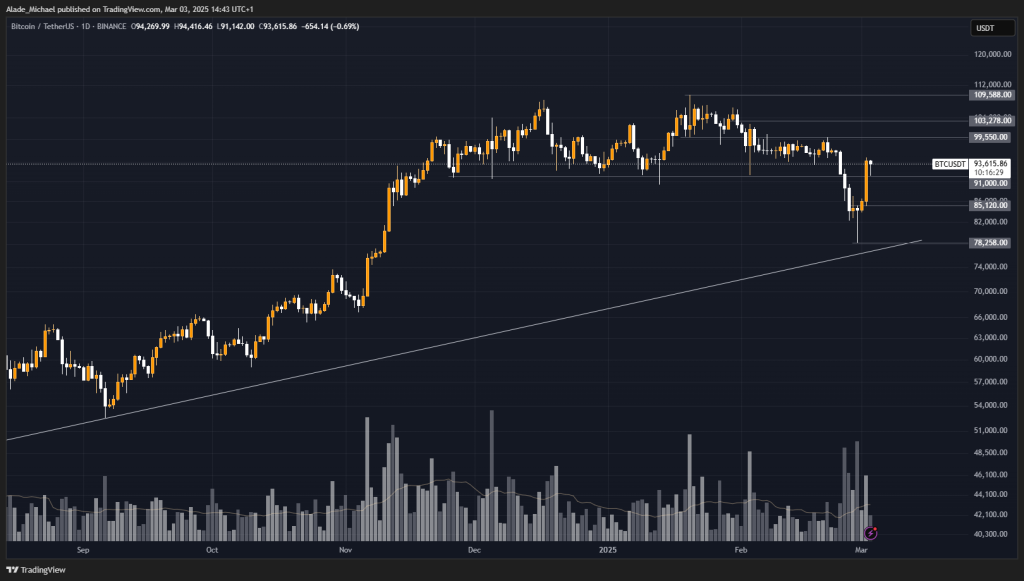The collapse started after losing grip above the $95k level, but the price interestingly retested that level during yesterday’s surge – completing a break and retest pattern. The level was rejected, and the price dropped to around $93.6k at the time of writing.