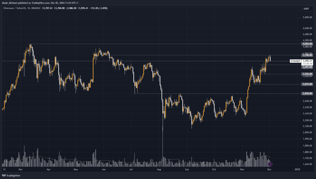 Despite struggling with volatility in the past few days, Ethereum’s price broke higher to tap the $3,700 zone today. The price is down but bigger moves lie ahead as it targets the current high while gathering liquidity.
