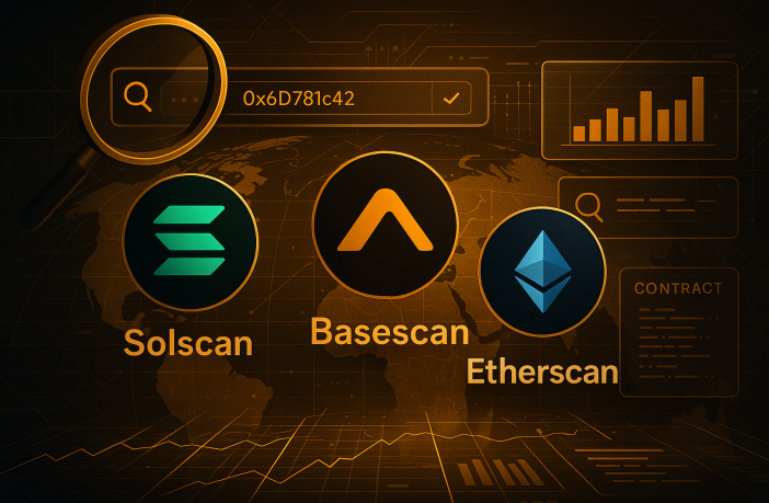 Blockchain explorers like SolScan, BaseScan, and Etherscan are your window into crypto networks. They let you look up any transaction, wallet address, or token on-chain.