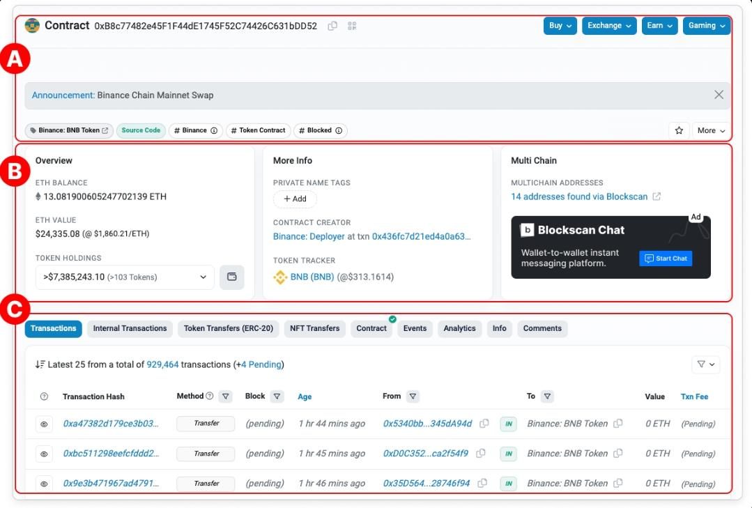 Part of DYOR is identifying project insiders. Developer wallets are often the ones deploying contracts or holding large token reserves. Here’s how to investigate them: