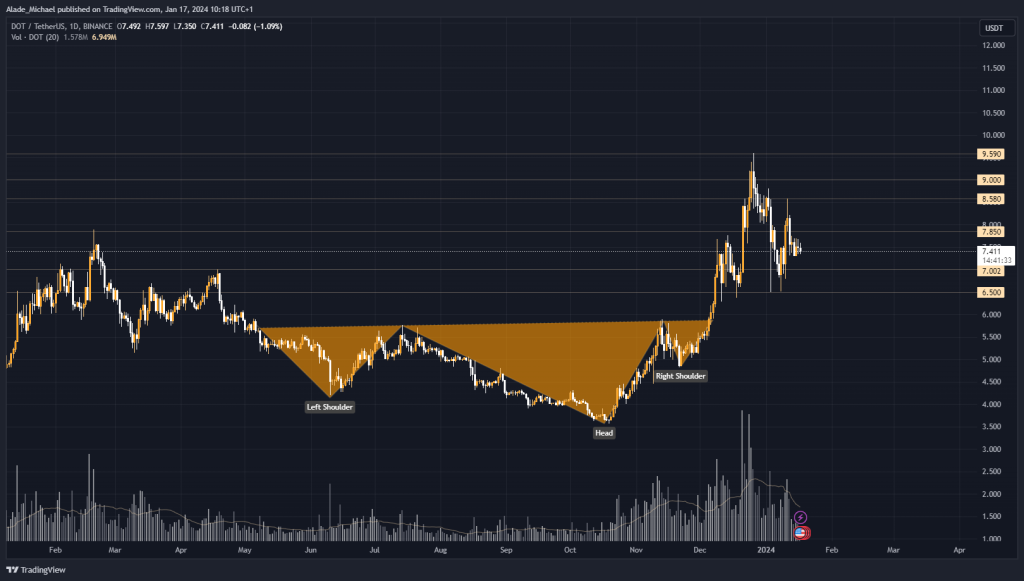 During the last short-term bullish rally, Polkadot formed an “inverse head and shoulder” – H&S pattern and broke out massively to a 17-month high within two weeks.