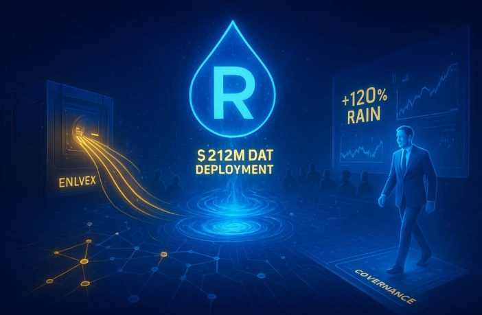 The surge began when $ENLV, a publicly traded biotech firm, announced a $212M treasury allocation into Rain Protocol.