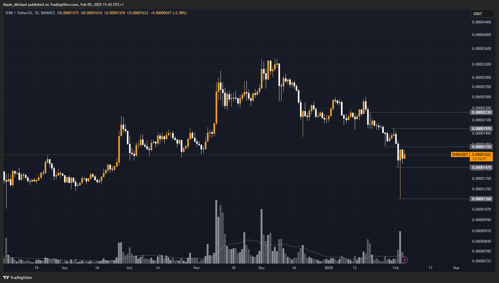 The major fear came after a three-week dump near the psychological $0.00001 level two days ago. That level became crucial for the bulls and they reacted strongly. They later defended it well and surprisingly pushed the price above $0.000017 that day.